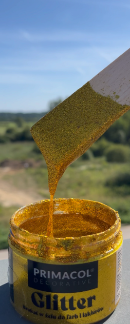 Gel con purpurina – disponible en dos colores: plata y oro. Fácil de mezclar con pinturas o con juntas para añadir un sutil efecto decorativo brillante. Perfecto para dar vida a una pared o añadirle un toque de brillo.