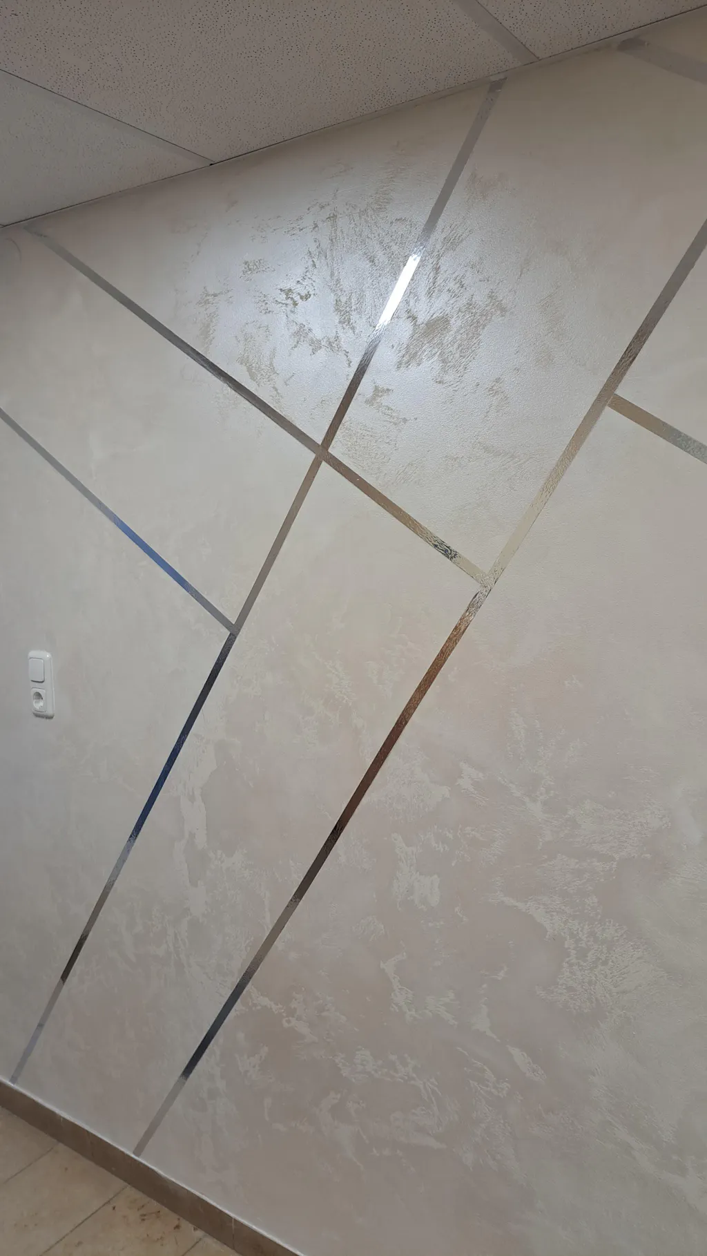 Start applying the product from the top corner of the wall and move diagonally extending the decorated surface. Make irregular, criss-cross brush strokes, spreading the paint in different directions until the entire wall is covered.